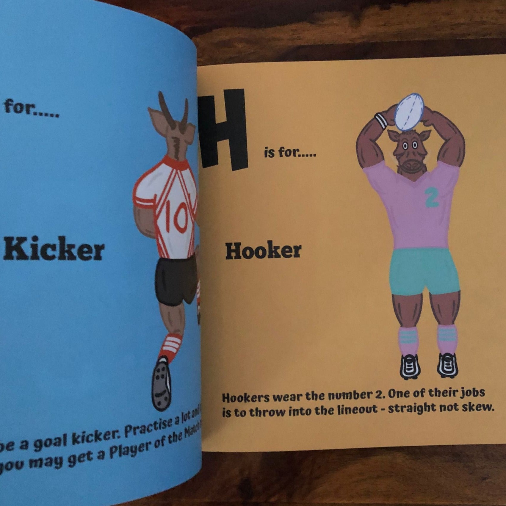 My First Rugby Book is a fun, illustrated ABCs rugby book for kids, which uses animal character poses, terms and rhyming verses all specific to rugby union. This book gives rugby-loving parents another tool to share their love of the sport with their children, invite them into the world of rugby union and nurture their love for the game.